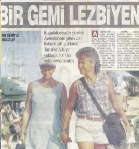 In 1999, Olivia made waves—literally and figuratively—on a cruise to Turkey that captured international media attention. Olivia's guests bought out the rug and jewelry marketplace in Kuşadası, earning praise in the local press for revitalizing the economy. By the time the Olivia cruise reached Istanbul, the excitement was palpable: newspapers, TV cameras, and reporters greeted the ship like paparazzi. Although 400 lesbians had planned to try and blend in while exploring this historic Muslim city, the Grand Bazaar had other plans. Every shopkeeper was ready, greeting Olivia's guests with warm smiles and cheerful calls of, "Come to my shop, lovely lesbian ladies!"