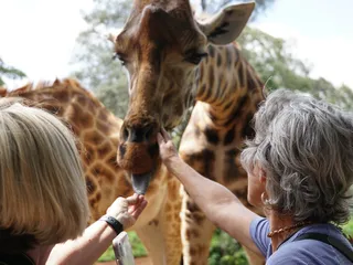 - Visit to Giraffe Centre: The Giraffe Centre, resting within 120 acres of primeval forest, is only eight miles from Nairobi. It is home to the African Fund for Endangered Wildlife (AFEW), devoted to the preservation of endangered Rothschild giraffe. The centre raises and relocates the giraffes to the wild. In addition to a multitude of other good works, AFEW brings thousands of African school children, many of whom would otherwise never see a wild animal, to the centre for educational programming. You will have the rare treat of hand-feeding these gentle giants while facing them eye-to-eye from an elevated viewing platform.