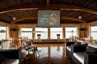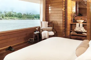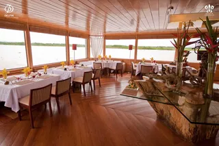 Delphin II is the most gracious and lovely river ship to sail the Amazon. Spacious, crafted of gleaming hardwood, she is both modern and welcoming. Her public spaces are beautifully appointed—with tropical flowers and native handicraft decorative details. Open decks, tropical hammocks perfect for lounging, and huge picture windows in each suite mean the river dramatically unfolds before your eyes. The covered top deck offers a wonderful cross breeze and panoramic views. And with just 28 guests on this luxury Amazon cruise, Delfin II fosters an exceptional esprit de corps and rewarding new friendships.