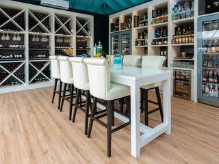 Libations at two additional bars: Blue Coral, offering all-day refreshments, pre-dinner cocktails, and after-hour festivities at its poolside location with beach view, and the Grapevine wine cellar (added charge)