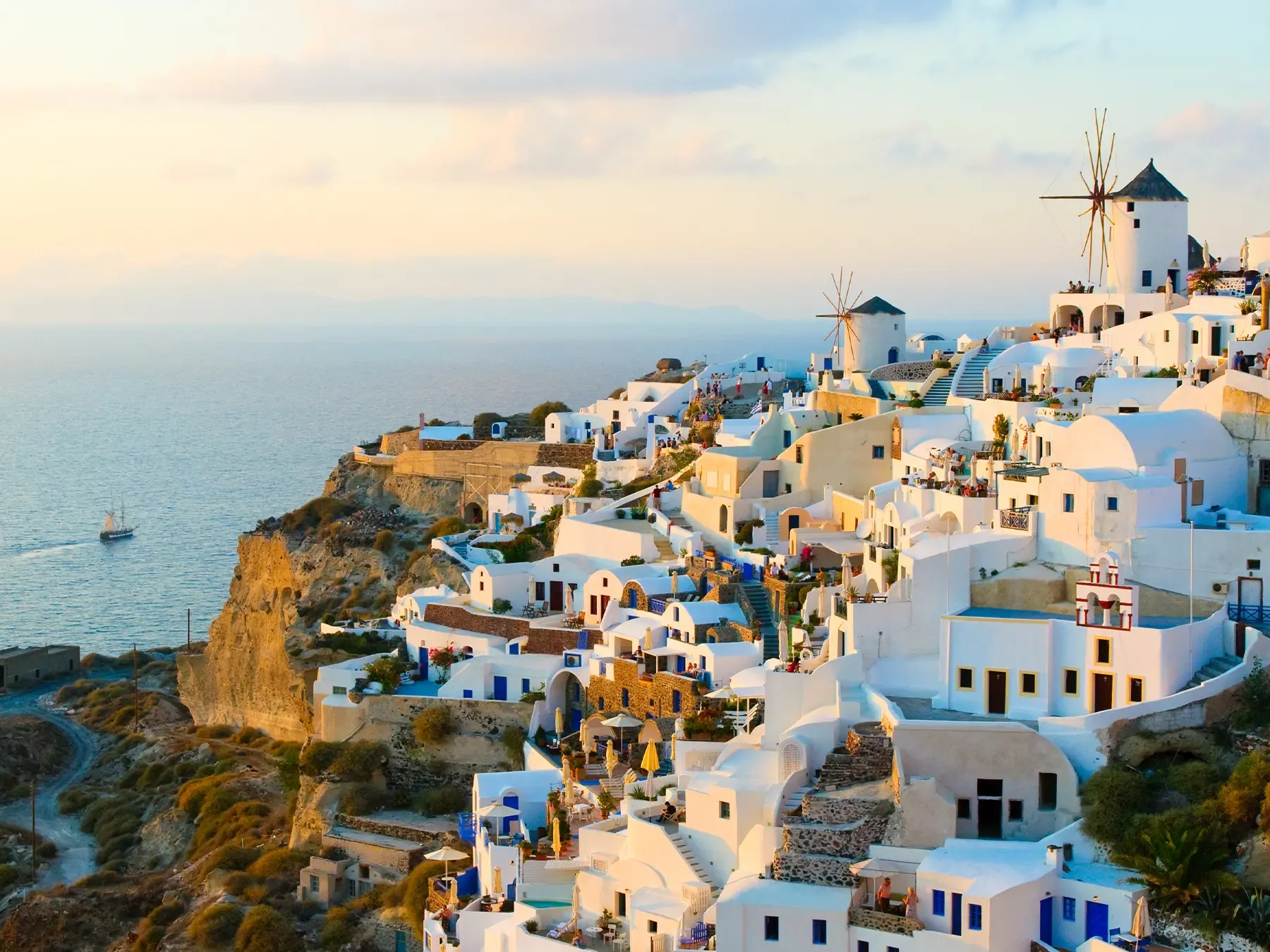 The capital, Fira, clings to the rim of the caldera 900 feet above sea. Take the cable car or giddy up on a donkey to climb the 588 steps to the top. Or head to the clifftop of Oia and take in the beauty of the countryside and traditional artisan villages. Finish your day with a glass of Vinsanto and plenty of postcard-worthy sunset photos.