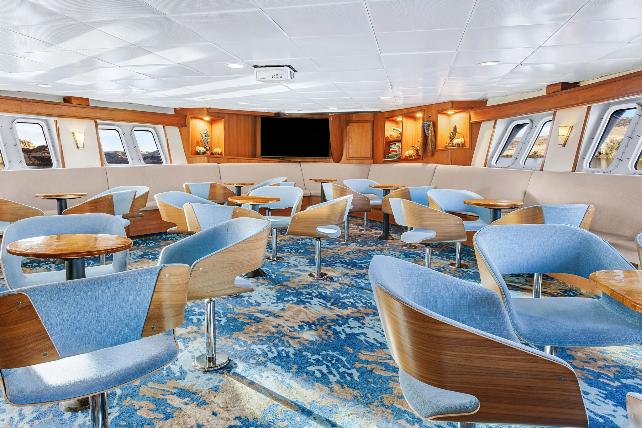 National Geographic Sea Lion features a library; global market; lounge with full-service bar and facilities for films, slide shows and presentations; observation deck; partially covered sun deck with chairs and tables; and LEXspa. Our “open bridge” provides guests an opportunity to meet our officers and captain and learn about navigation. - Special Features