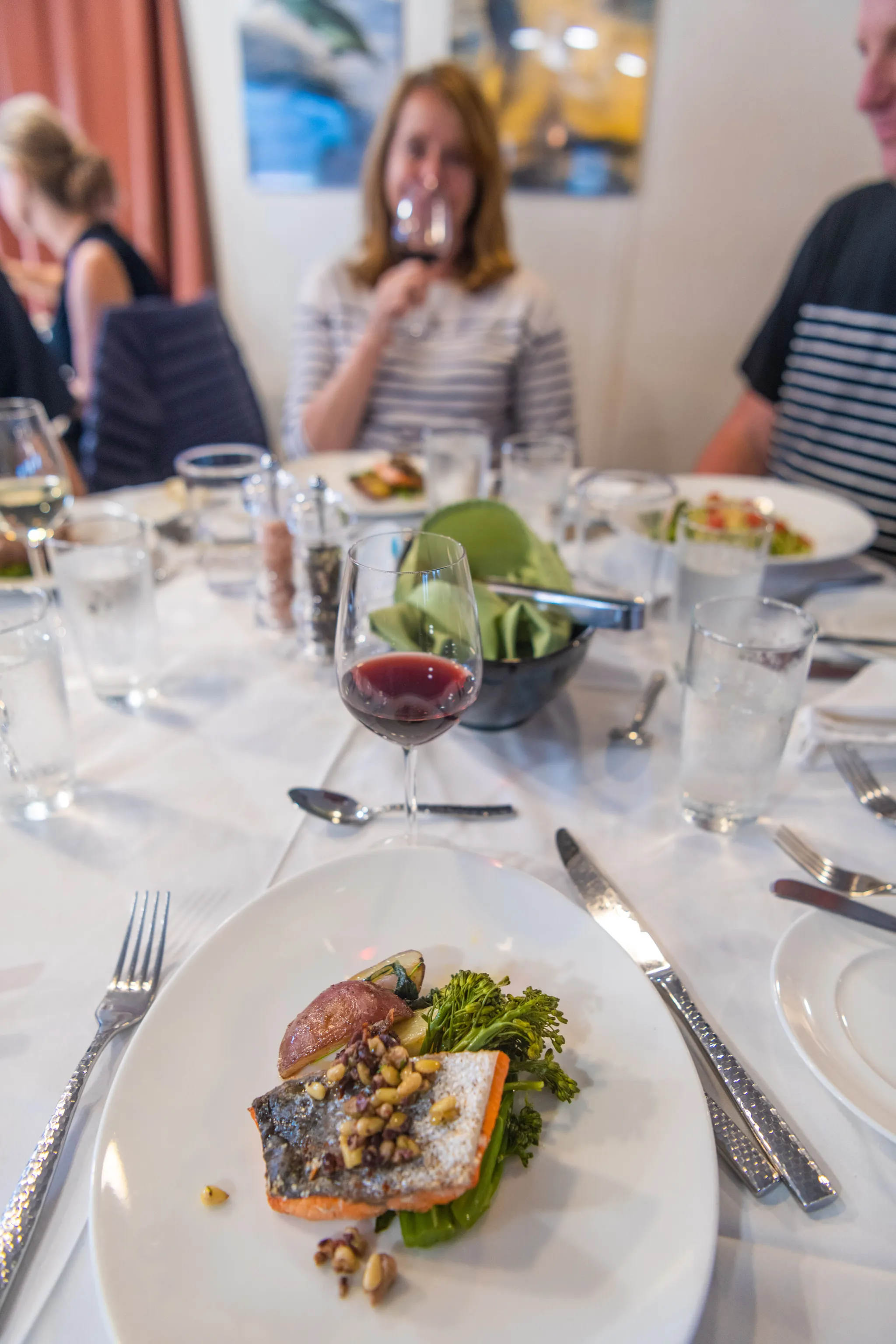 - Meals are served in the dining room at a single seating with unassigned tables for an informal atmosphere and easy mingling. Breakfast and lunch are usually buffet or family style, and dinner is served with 3–4 sustainable choices. The menu features locally inspired fare, and is locally sourced where possible.